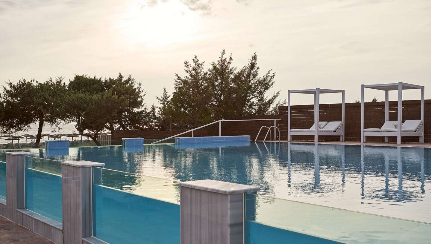 Kõik hinnas teenusega suhteliselt uus hotell asub Agios Georgios kuurortis, Korfu linnast 39km kaugusel. Hotellis on avarad numbritoad, olemas ka toad otsepääsuga basseini (swim up). Hotell majutab reisijaid alates 16.eluaastast ning sobib ideaalselt rahuliku puhkuse veetmiseks.